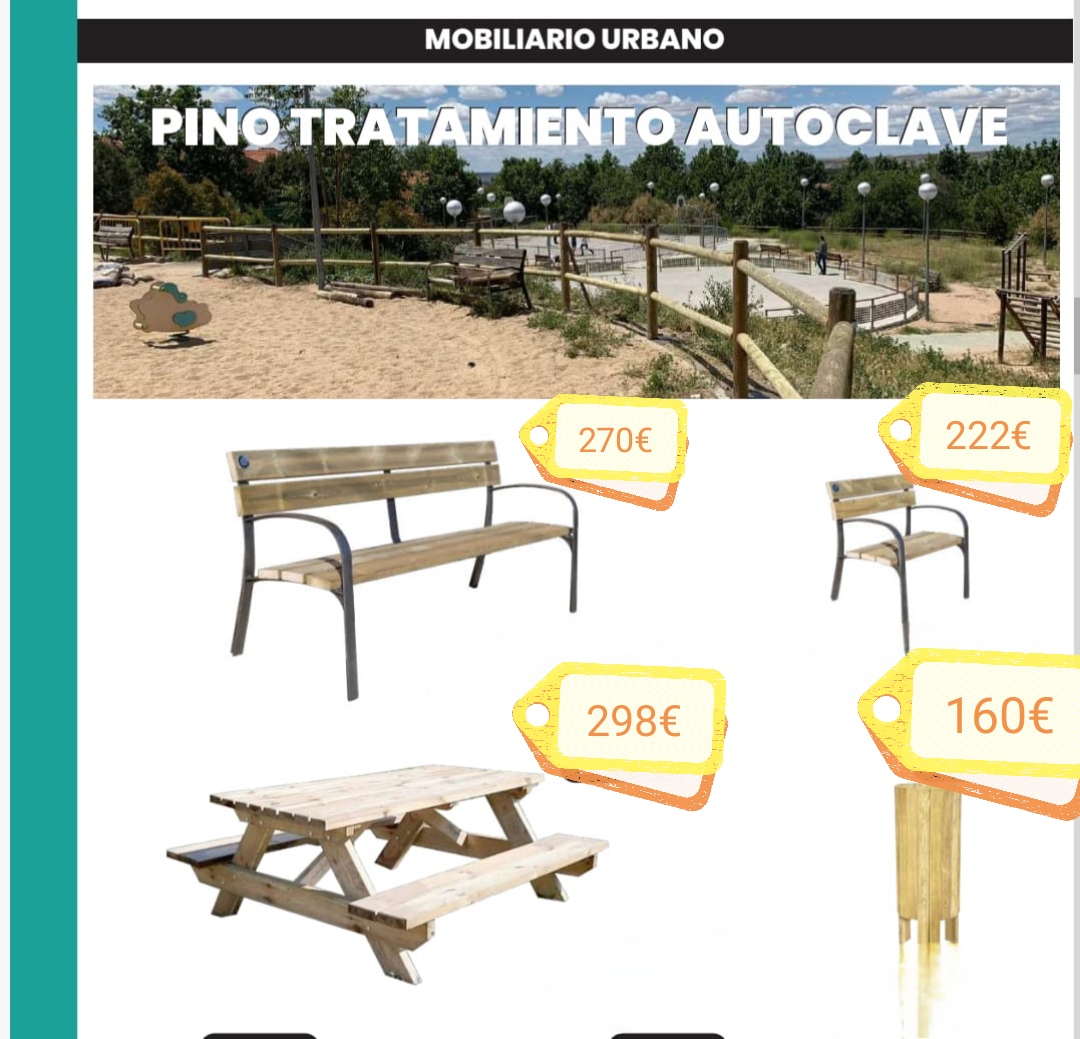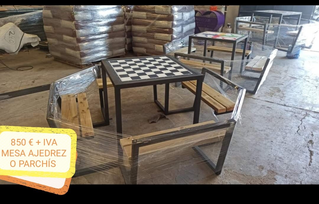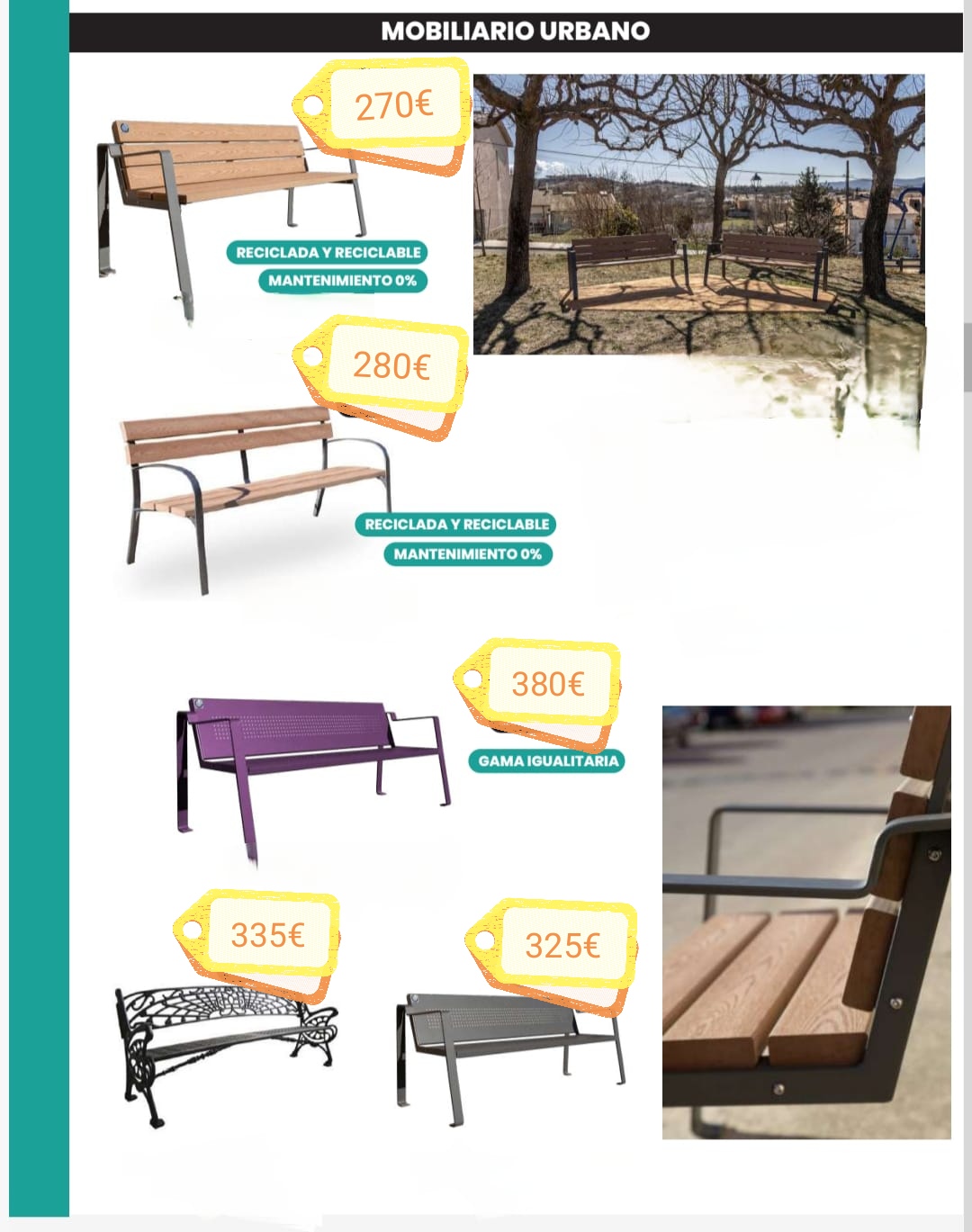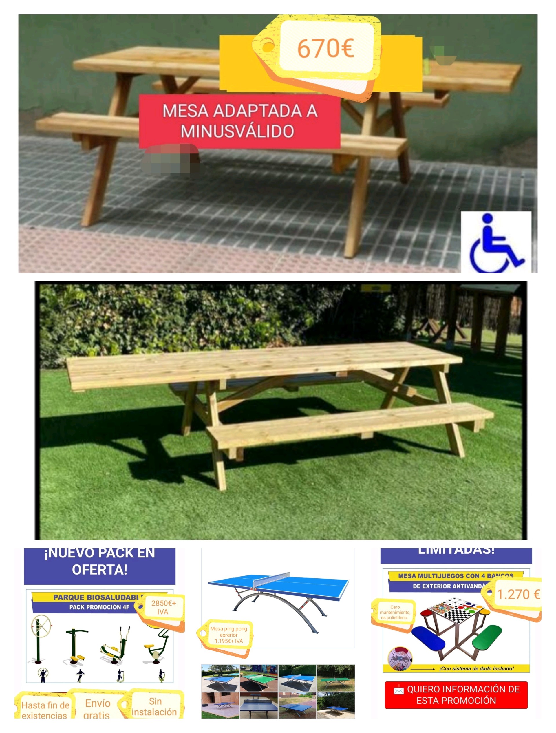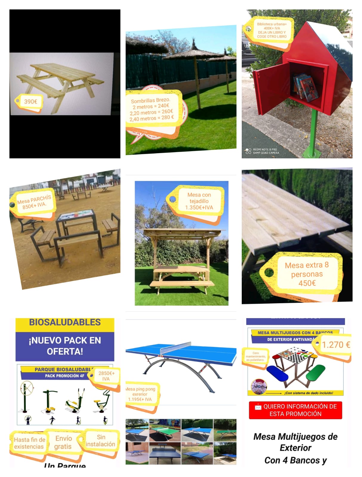 Mesas, bancos, parques biosaludables, columpios... Mobiliario completo para parques de pueblos y ciudades.