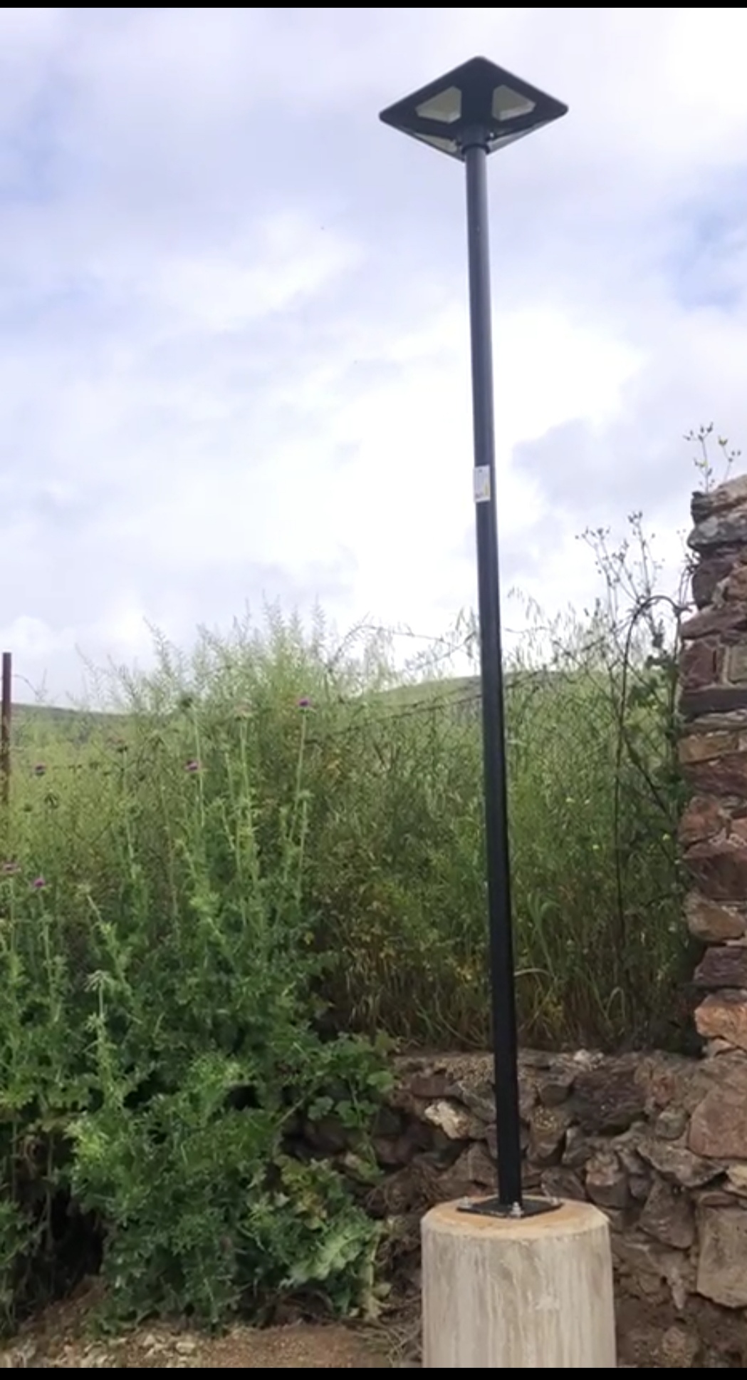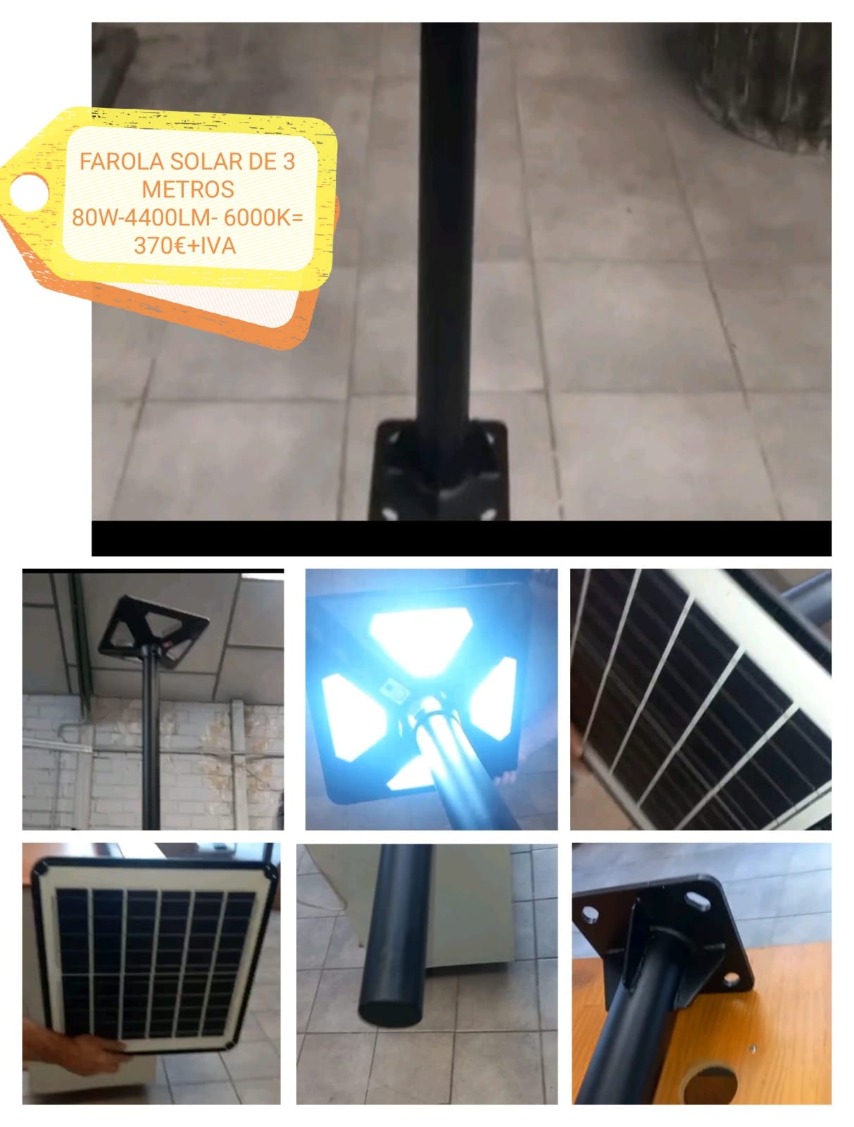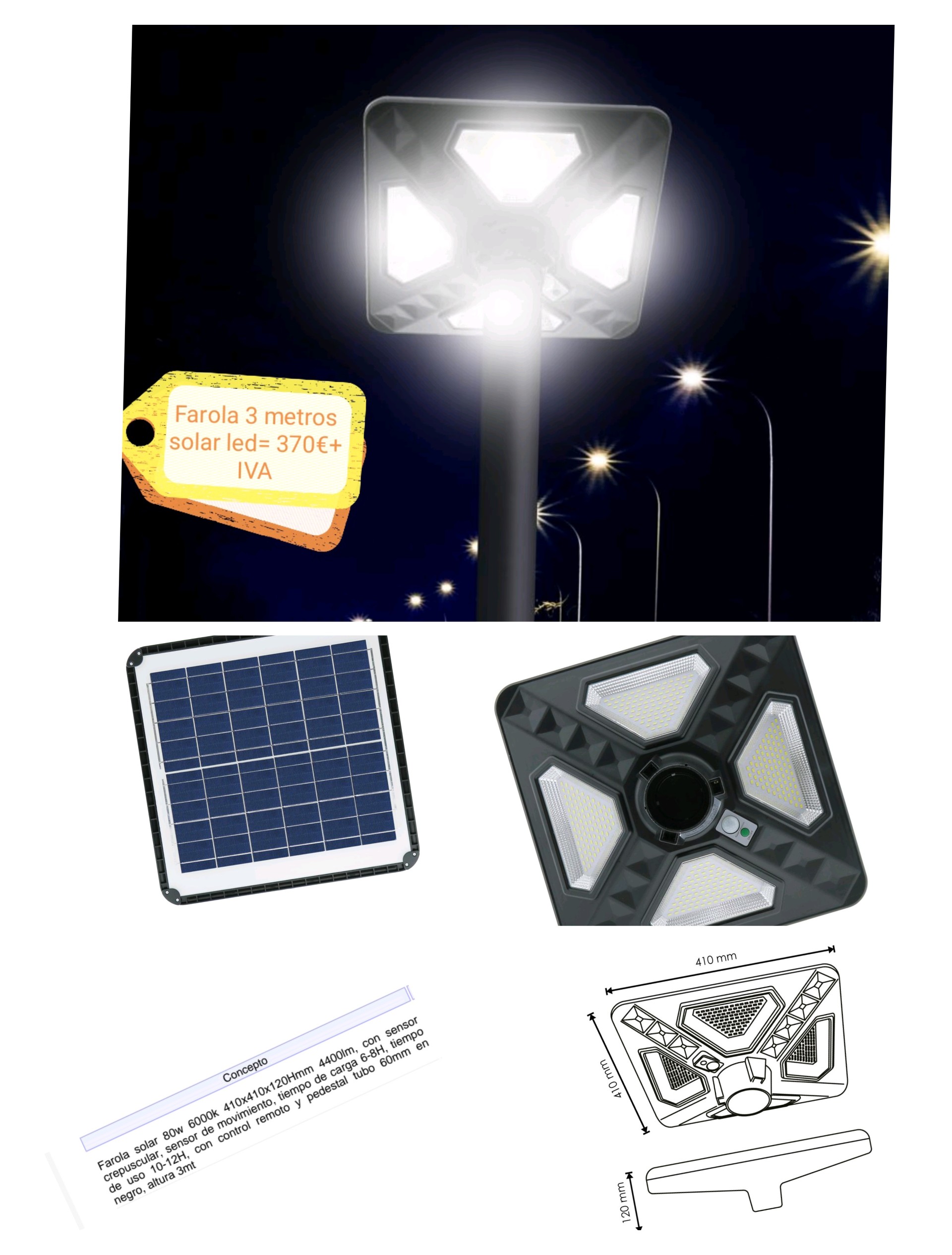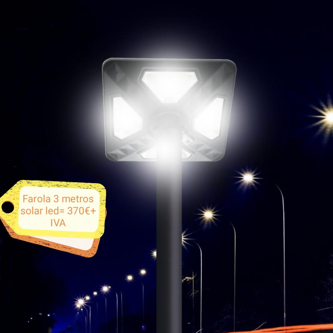 Farola led solar con sensor de movimiento que se enciende sola por la noche.