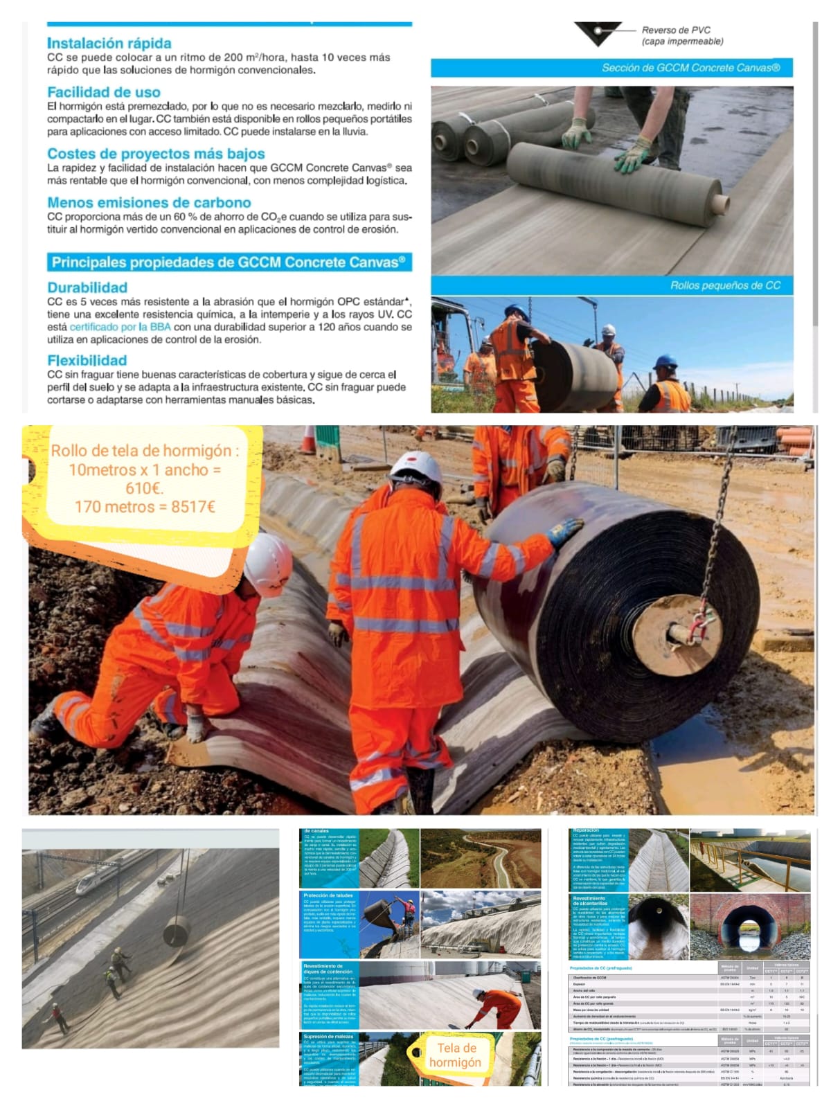 Rollo de tela de hormigón y cualquier otro material necesario para las obras.